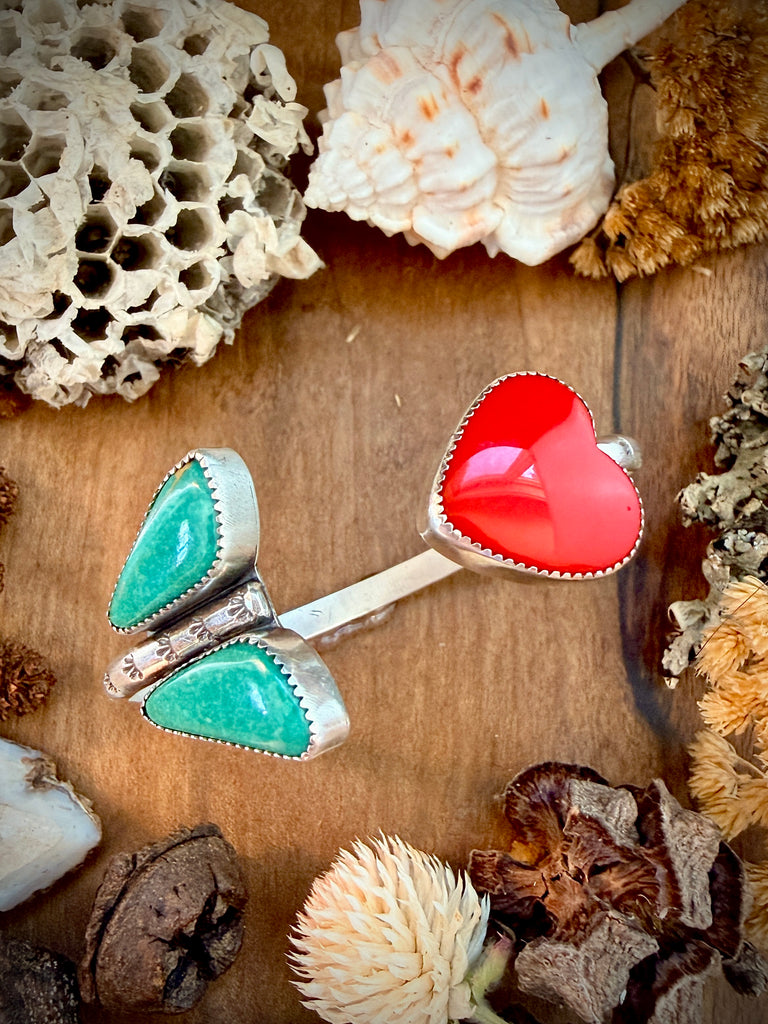 Hand fabricated Arrow Cuff with Rosarita heart and Turquoise.
