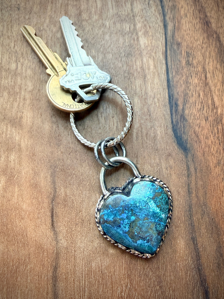 Chrysocolla Heart Keychain