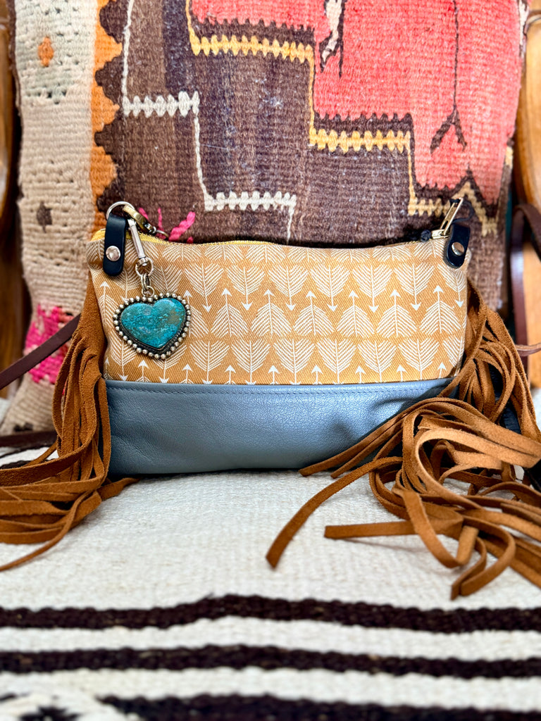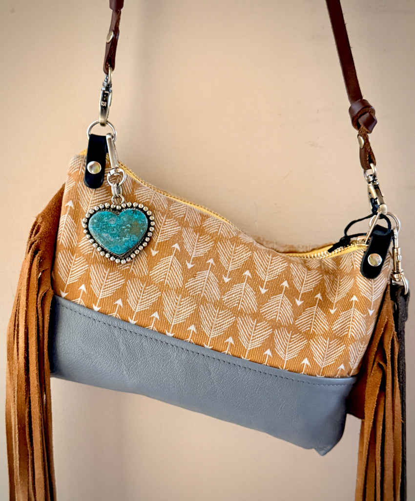 Big bold bag charm with stainless clip and Tibetan silver/Chrysocolla heart